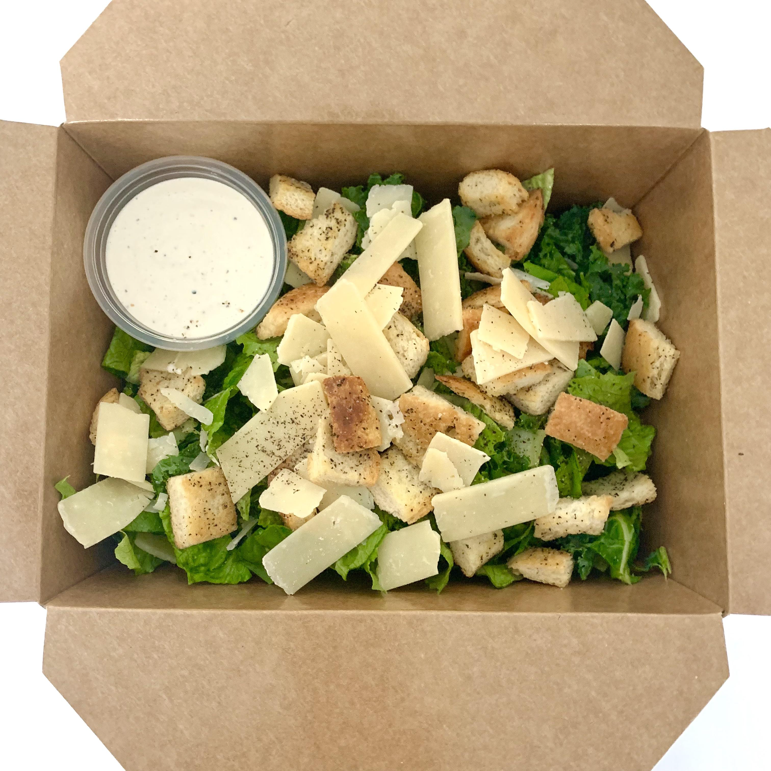 Chopped romaine and kale, housemade croutons, shaved parmesan and a creamy Caesar dressing on the side.
